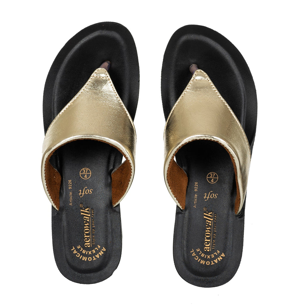 Aerowalk Women Gold Thong Style Flat Sandal with Glossy Upper (9226_GOLD)