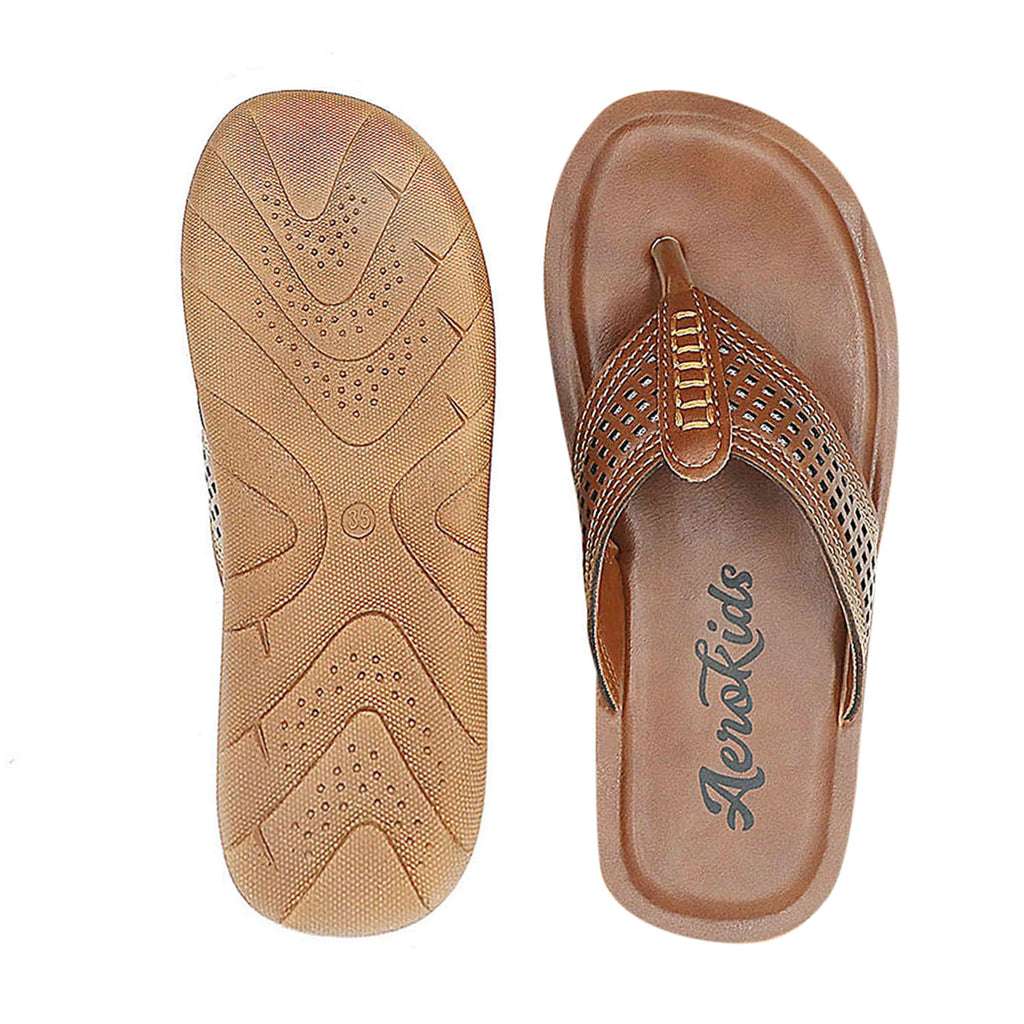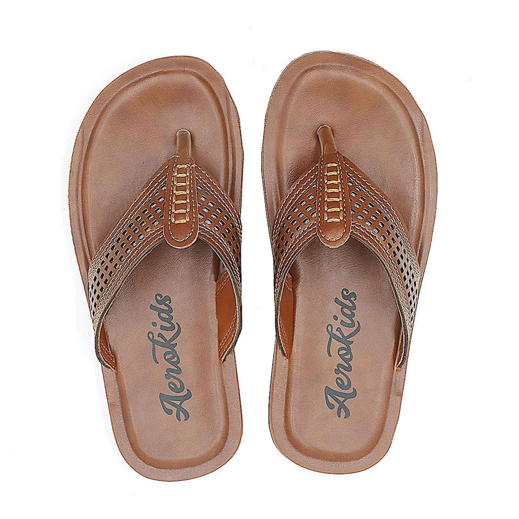 Aerokids Boys Tan Thong Style Sandal with Perforated Upper (CS96_TAN)