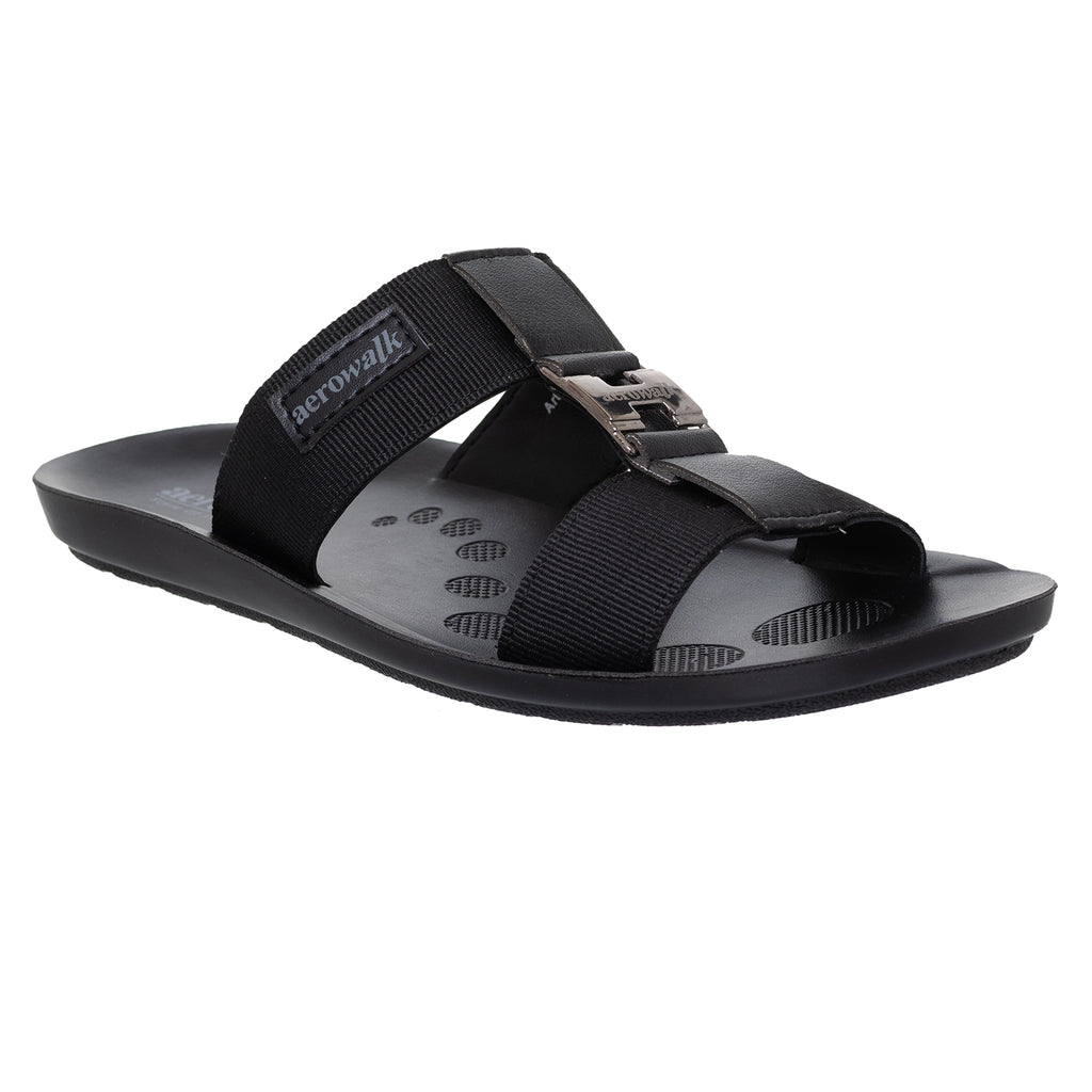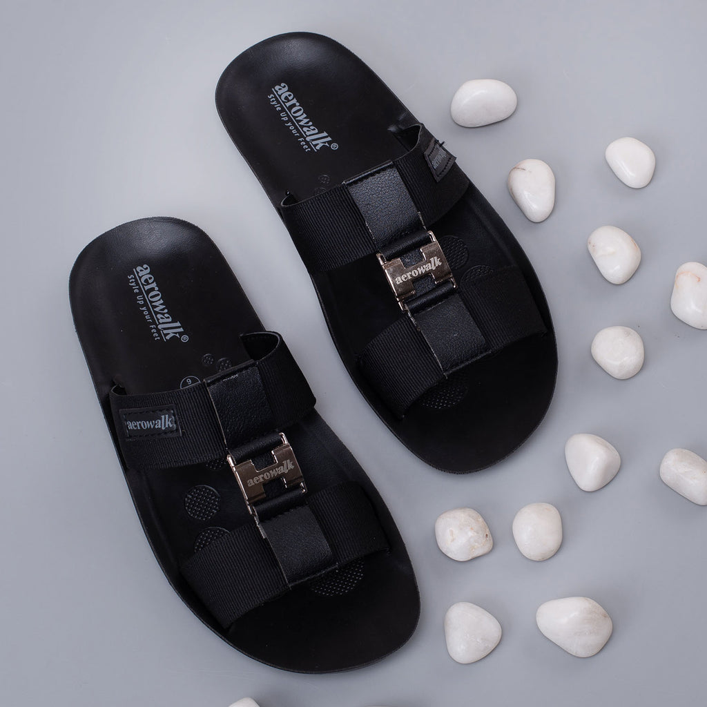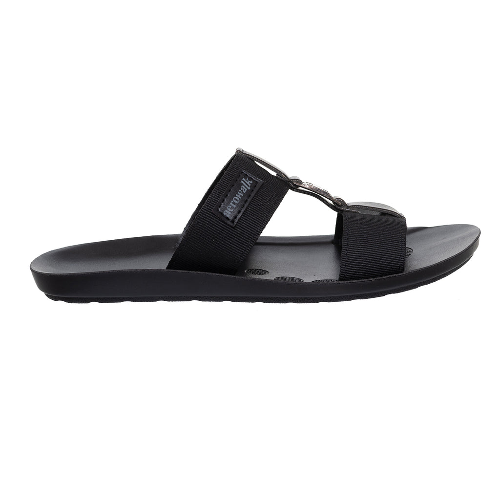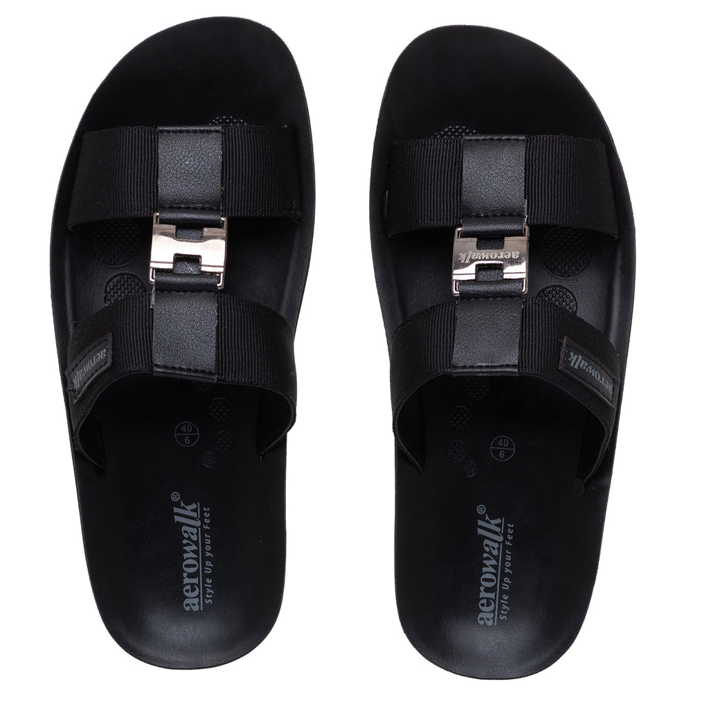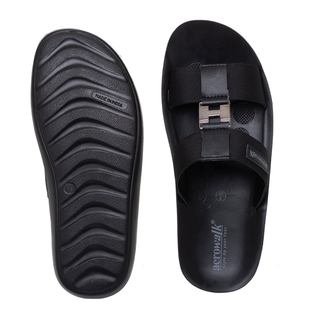 Aerowalk Men Black Mule Sandal with Buckle Styling (JK06_BLACK)