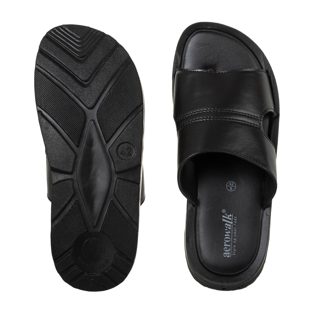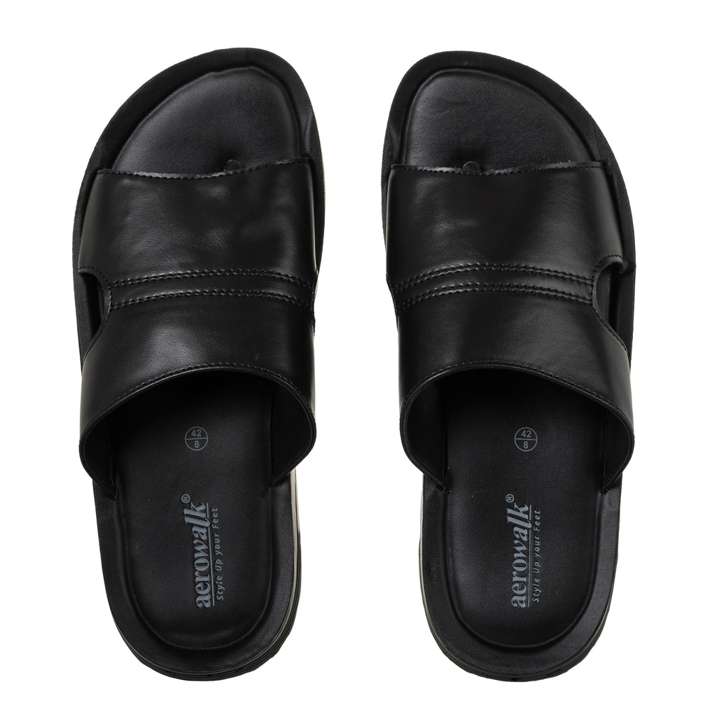 Aerowalk Men Black Mule Style Sandal with Slip-on Closure (FM42_BLACK)
