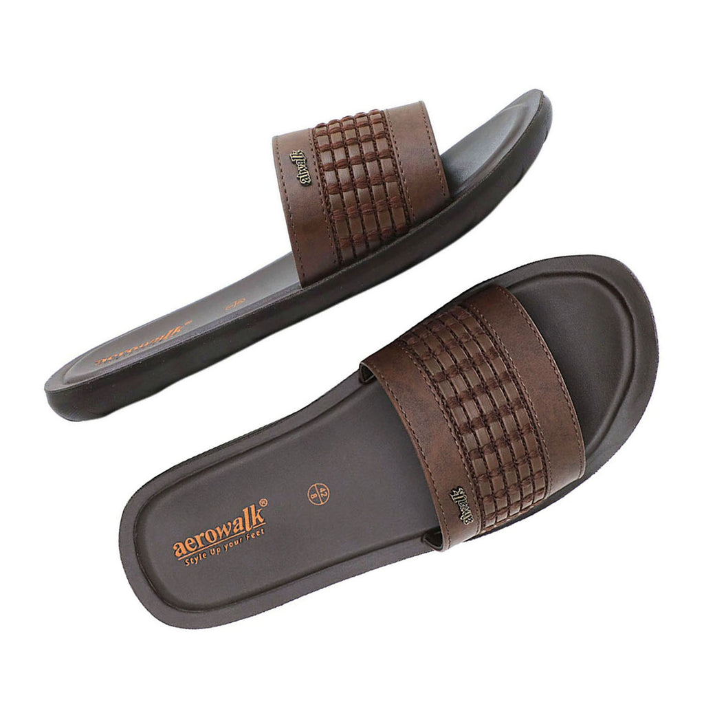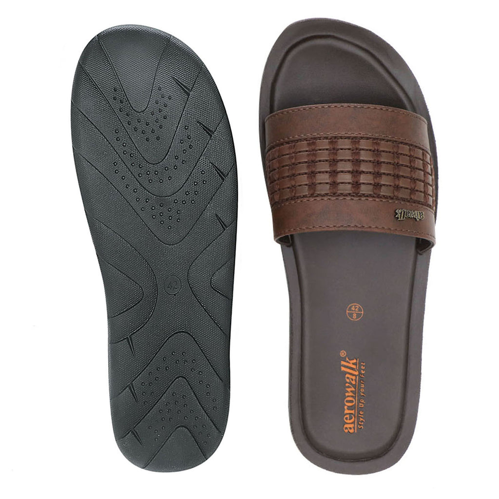Aerowalk Men Brown Slide Design Sandal with Slip-on Closure (6344_BROWN)