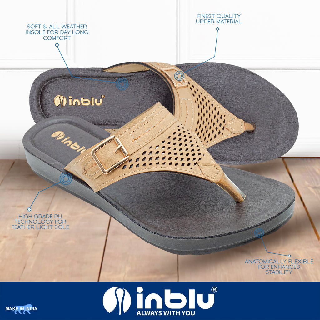 | Inblu offers a widespread collection of footwear with high quality fashionable upper, relaxed contoured insoles & Italian designed PU soles that let you cruise through the day in style. Our Motto “We Care for Your Feet” thoroughly suggests our goals & vision to beautify human feet & to pamper them with day long comfort. We provide stunning, trendy & universal designs in all our products. Our collaboration with Condor Trade SRL, Italy makes us competent to deliver international styles with higher level of comfort in all our products. Well-being & durability is utmost important for us thus our footwear is made through seamless injection process to give it sturdiness for years. |