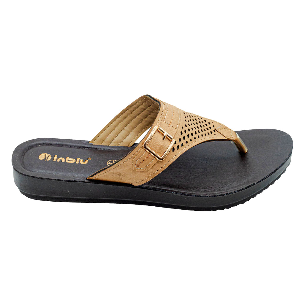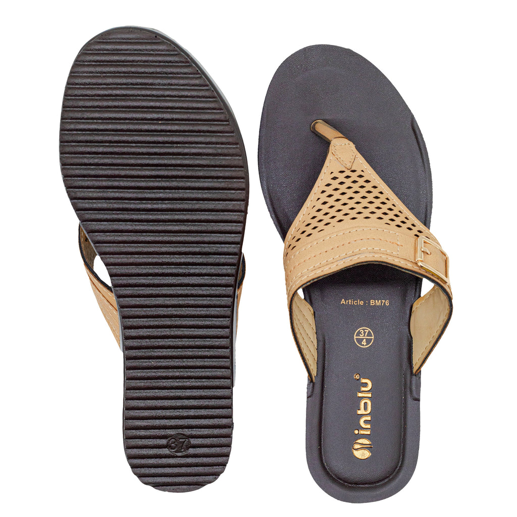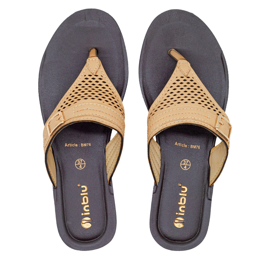 Inblu Women Beige Slip-On V-Shape Sandal with Laser Cut & Buckle Styling Upper (BM76_BEIGE)
