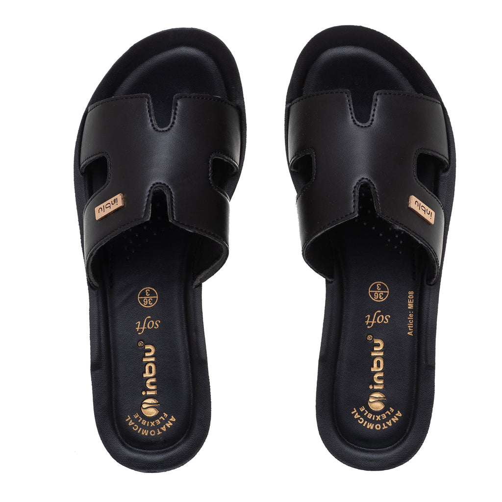 Inblu Women Black Mule Open Toe Flat Sandal (ME08_BLACK)