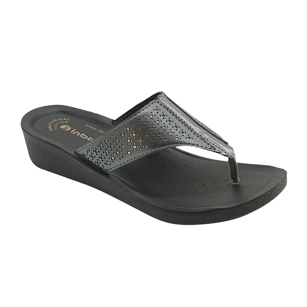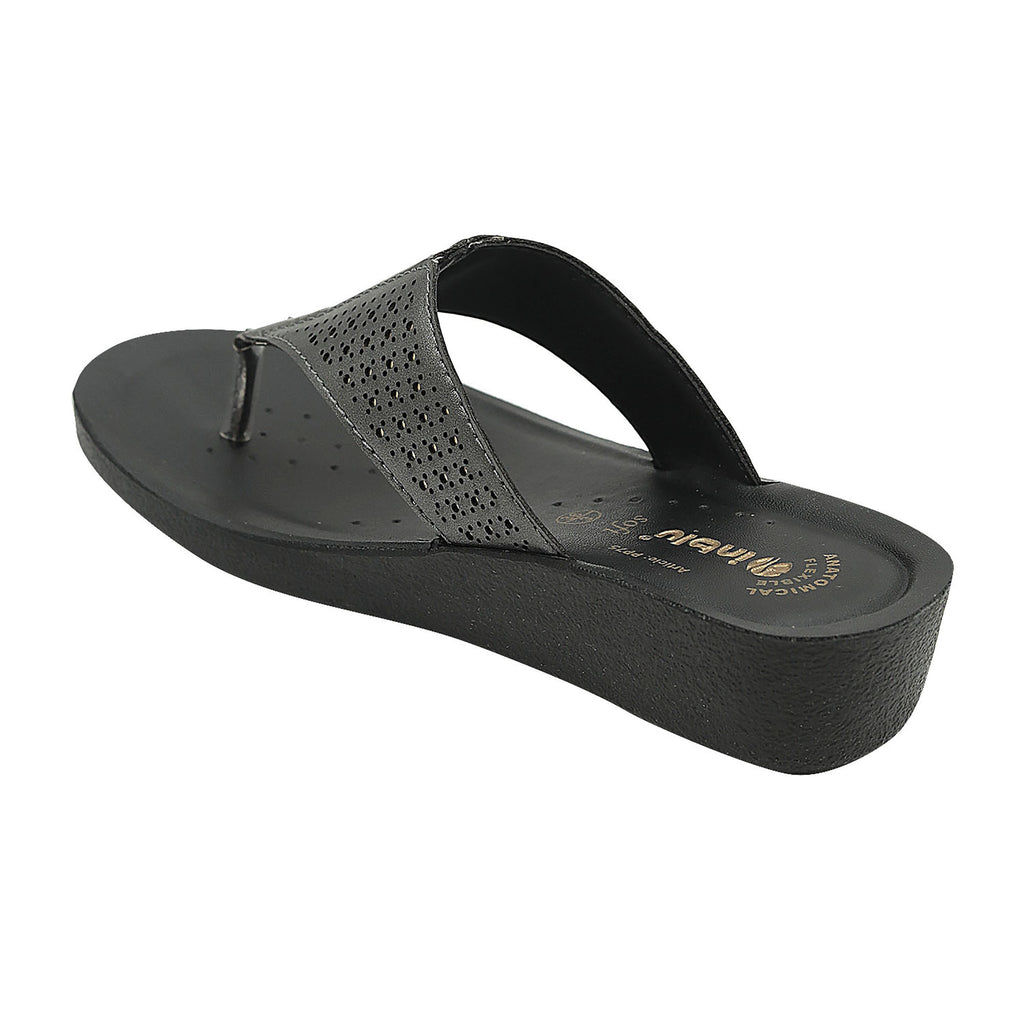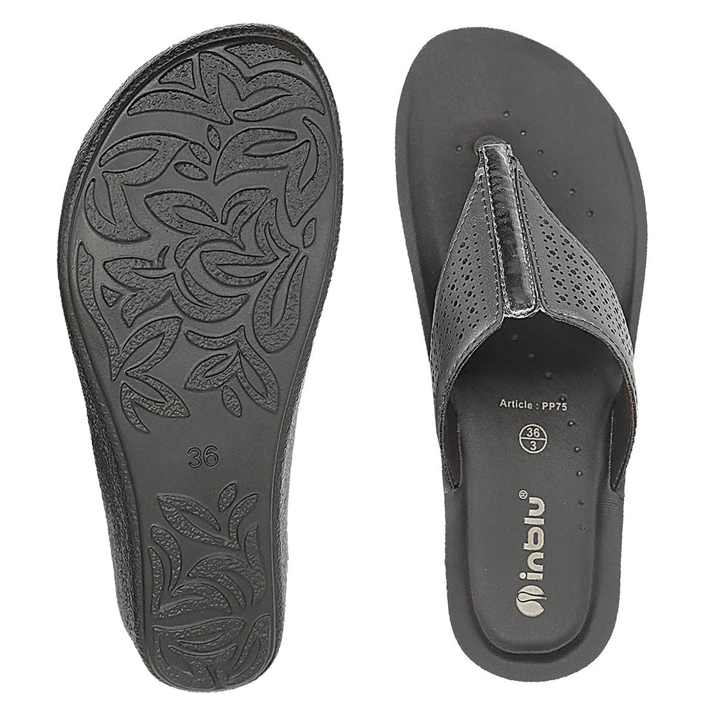 Inblu Women Black Thong Style Flat Sandal with Laser Cut Upper (PP75_BLACK)