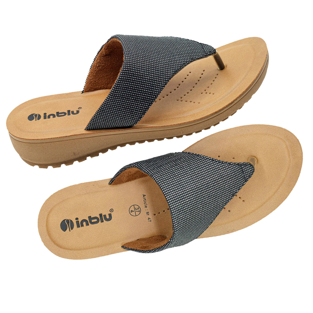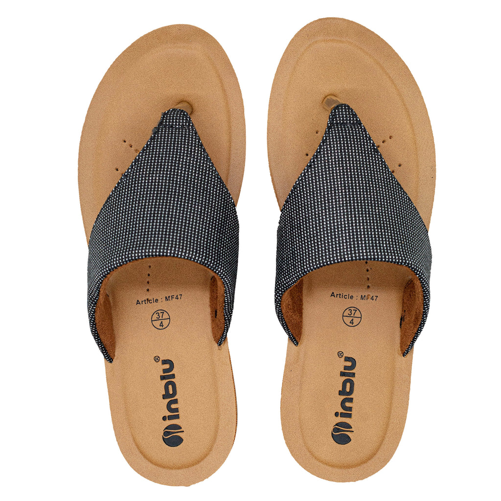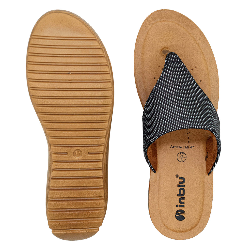 Inblu Women Black Thong Style Slip-On Sandal with Textured Upper (MF47_BLACK)